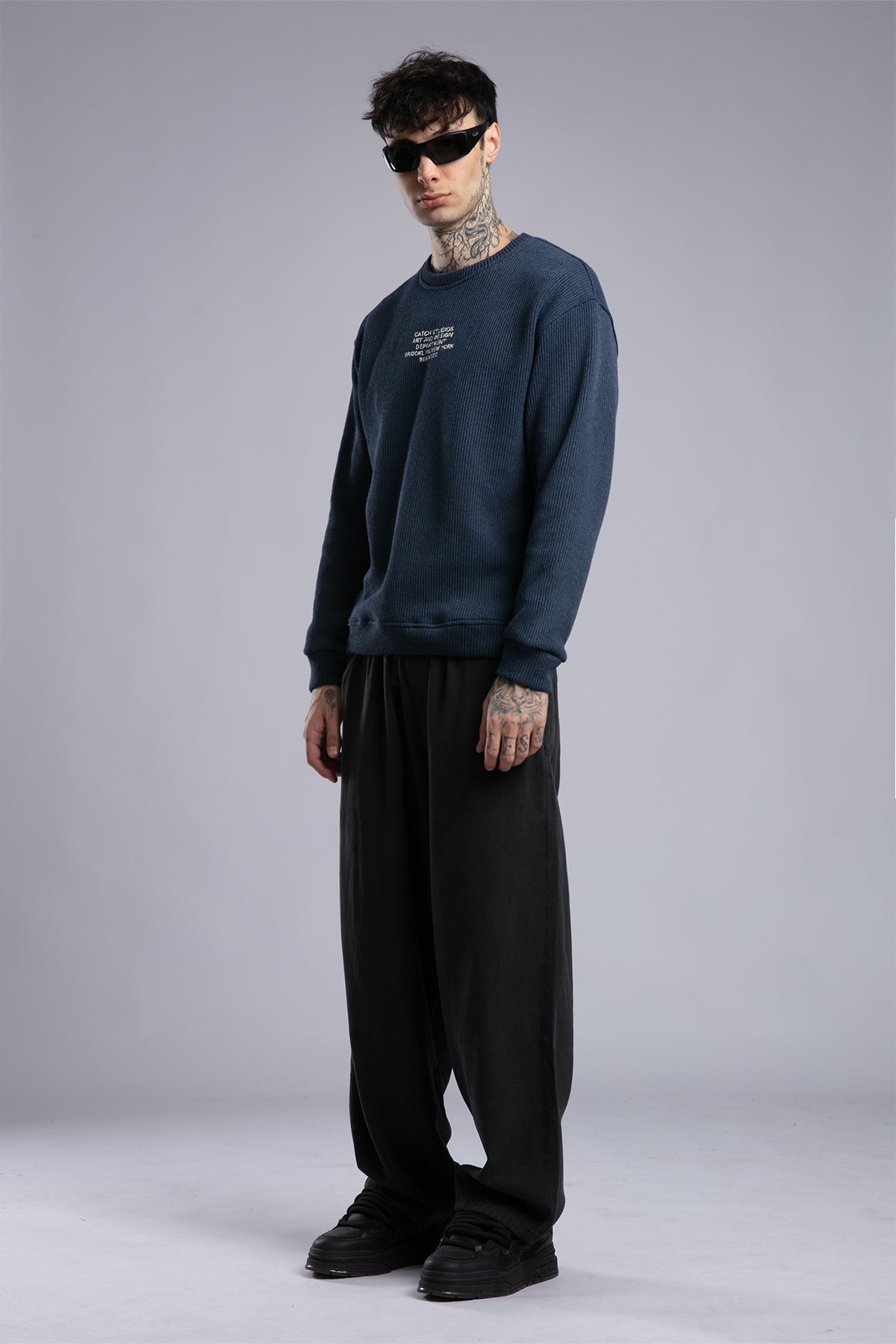 Ön Yazı Detaylı Triko Kazak